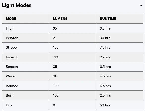 – 8 Licht Modis wählbar, einschließlich garantierter Laufzeiten von bis zu 50 Stunden